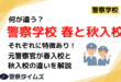 警察学校警察学校ではどんな試験が行われるんですか?試験で結果を出せるか不安です…。 これから警察学校へ入校する予定の方は警察学校での生活について不安をお持ちでしょうが、それと同じくらい勉強の面でも不安を持っていることだと思います...